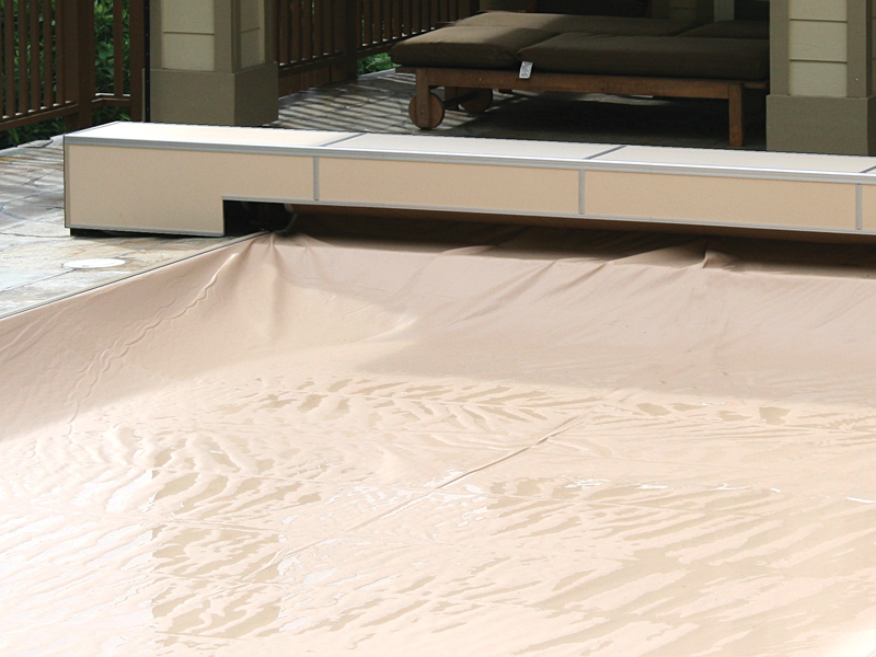 The Flush mount lid integrates seamlessly for vinyl liner pools and is available for wood or concrete boxes with Underside™ track.